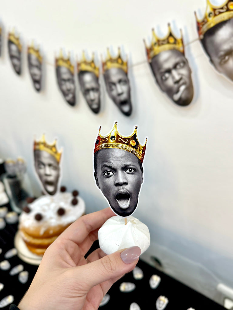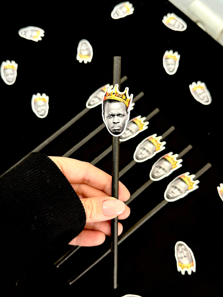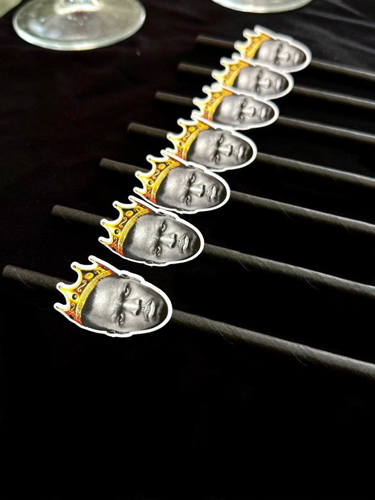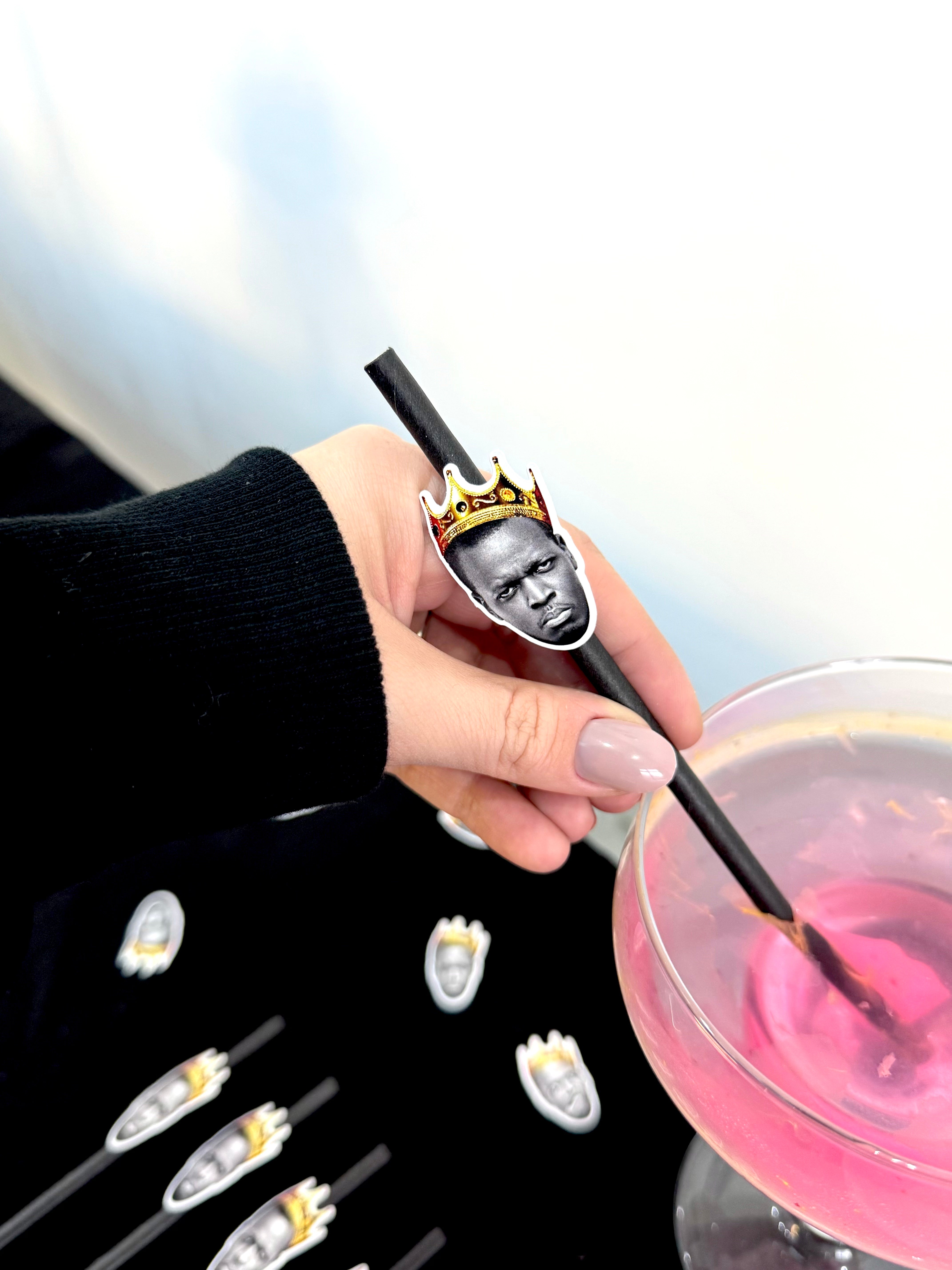 Altın taçlı kişiye özel pipet süsleri, içecek sunumlarını sade ama dikkat çekici bir hale getirir. Erkek partileri için mükemmel detay!