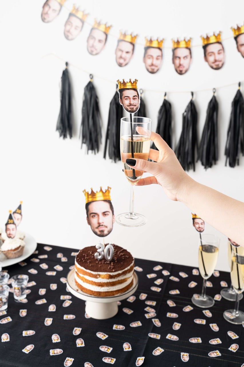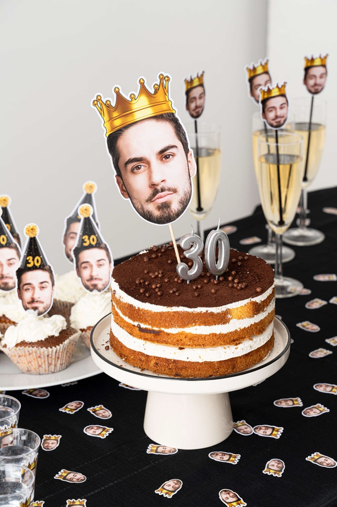 Doğum günlerini taçlandırın! Fotoğrafınızla hazırlanan kral taçlı cake topper, pastanıza sadece eğlenceli değil aynı zamanda unutulmaz bir dokunuş katar. Sevdiklerinizin gülümseyeceği, fotoğraflarda öne çıkacak özel bir detaydır