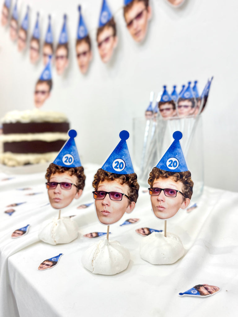 Kişiye Özel 20 Yaş Cupcake Topper | Yüz Baskılı Parti Süsü – fluparty