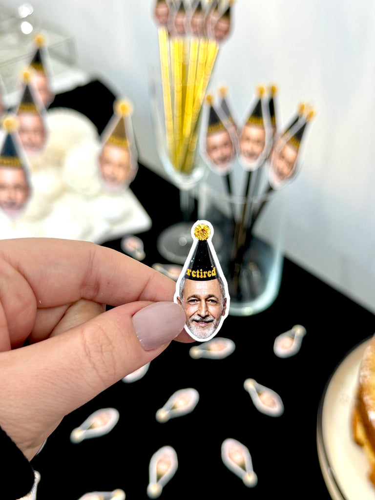 Cupcake topper, banner, drink stirrer ve konfeti gibi parçalarla ofis havasını partiye çevir.