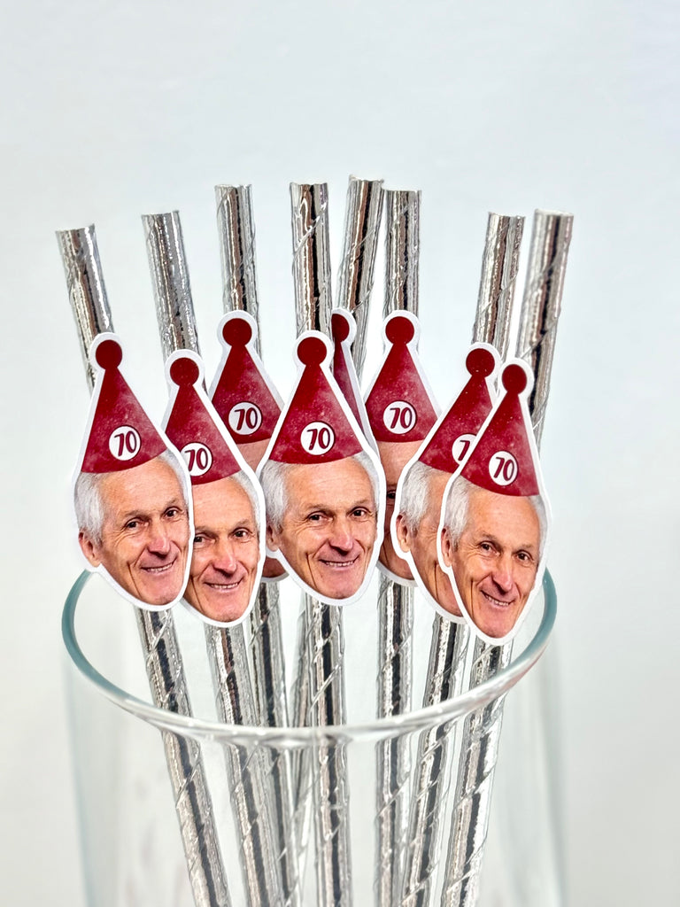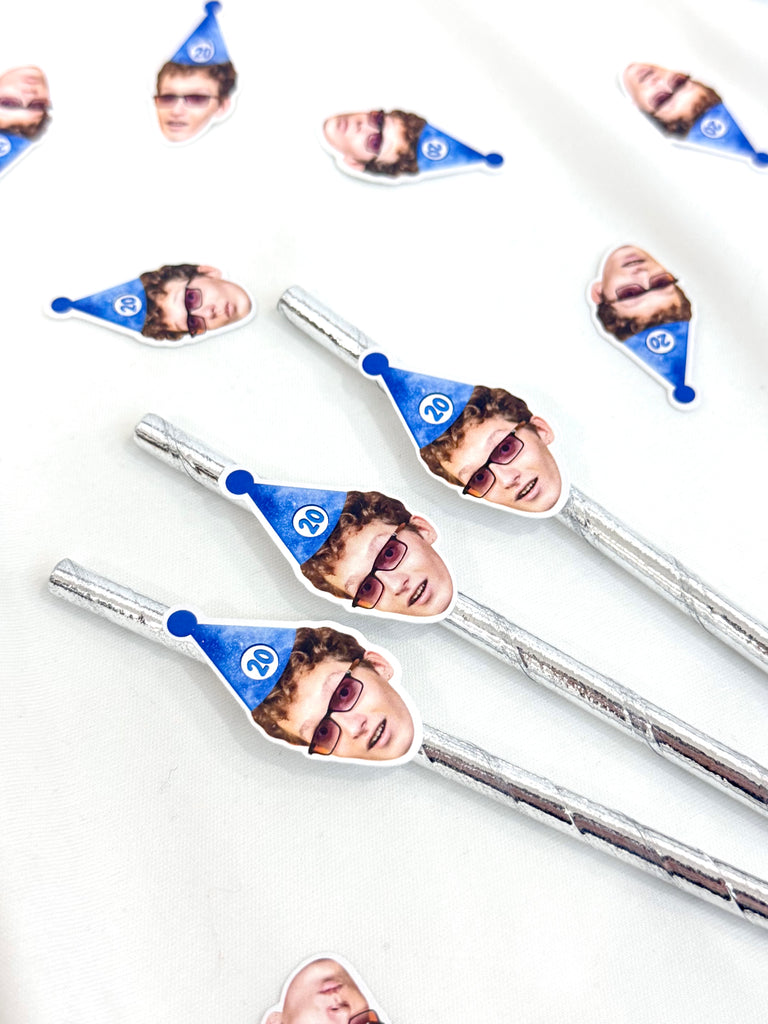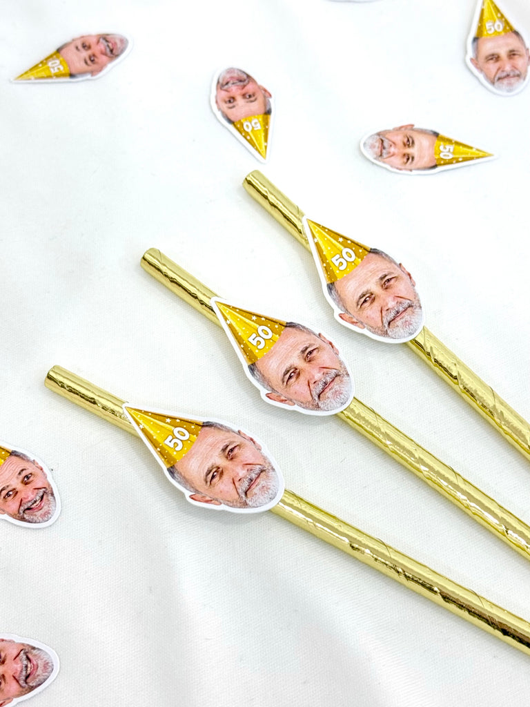 Kutlamalarda içecekler bile konuşsun! Fotoğrafınızla hazırlanan kişiye özel pipetler, doğum günlerinden bekarlığa vedaya kadar her partide masanıza eğlenceli ve şık bir hava katar.