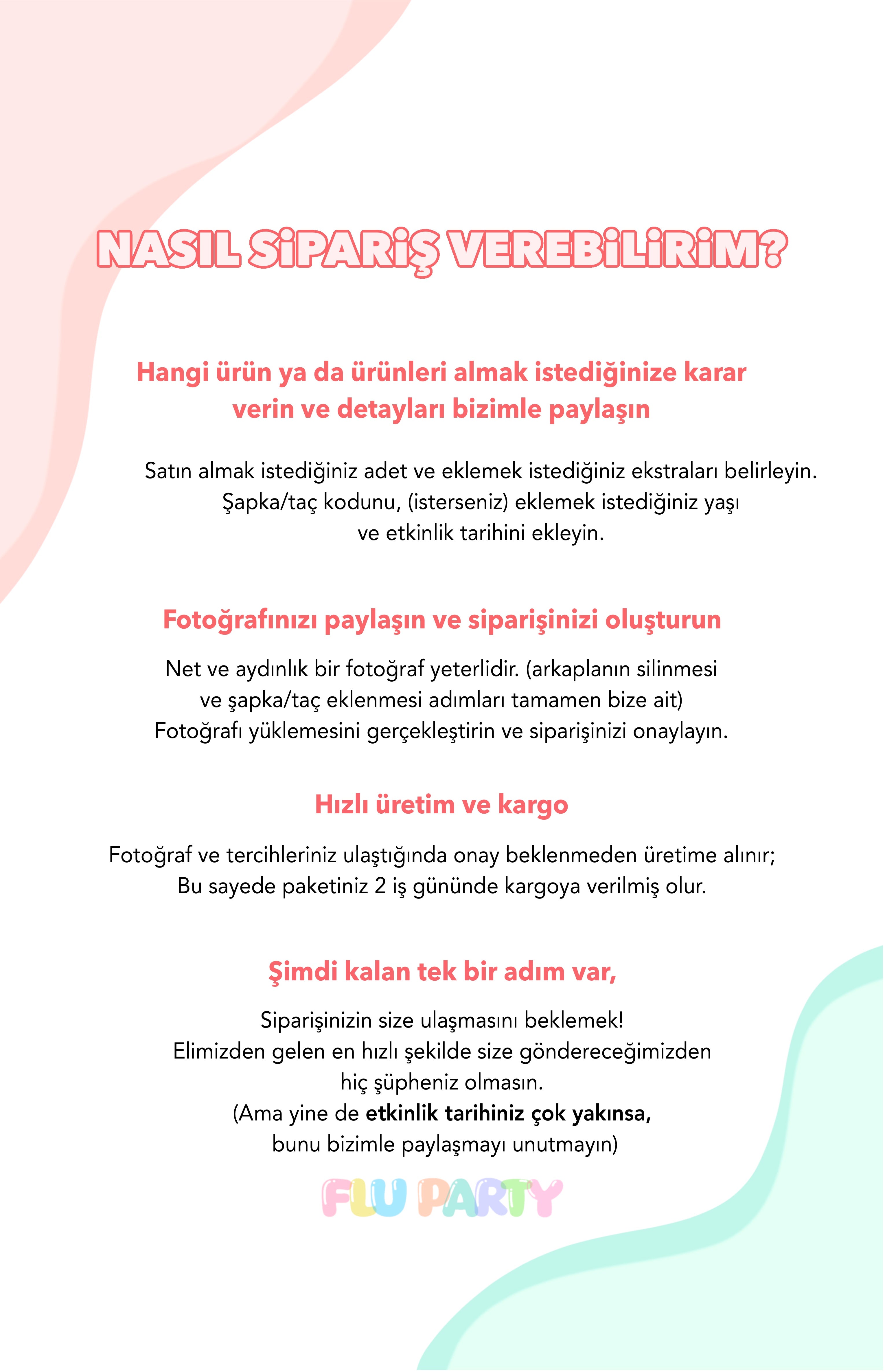 Fotoğraflar yalnızca siparişinizi hazırlamak için kullanılır, üçüncü kişilerle paylaşılmaz.