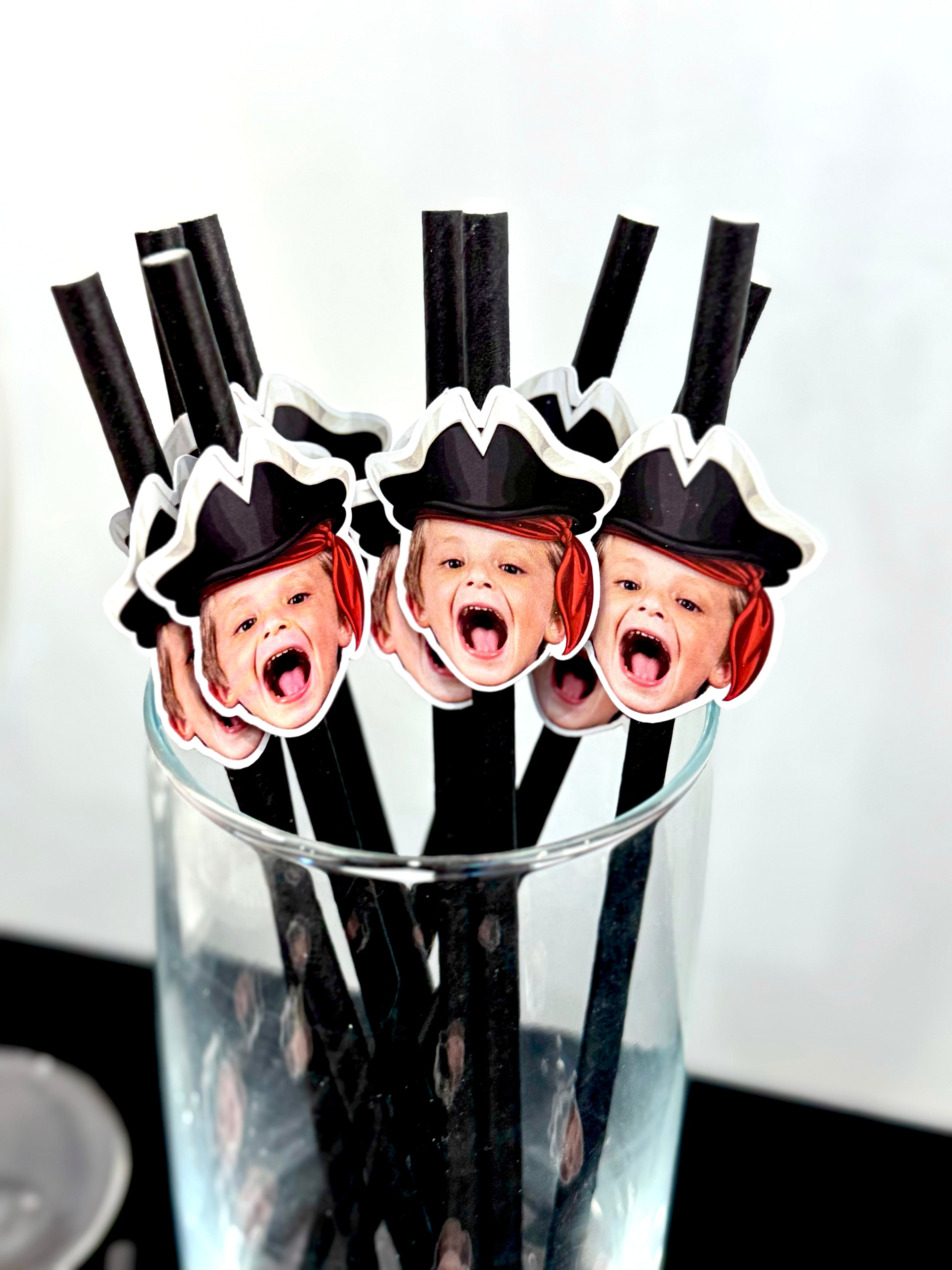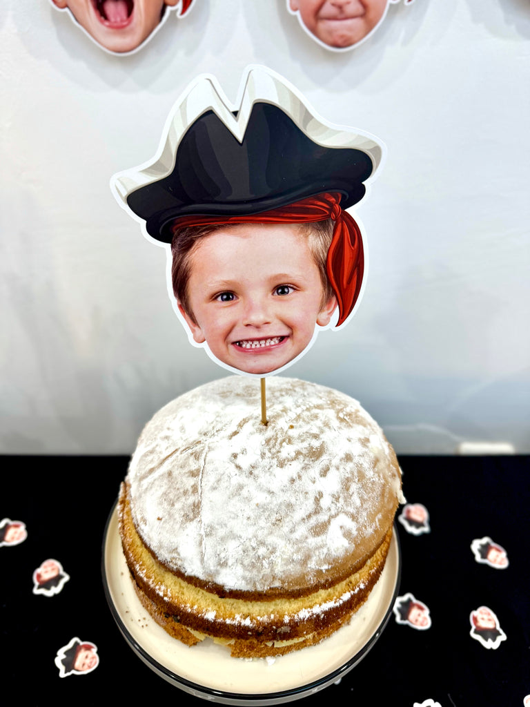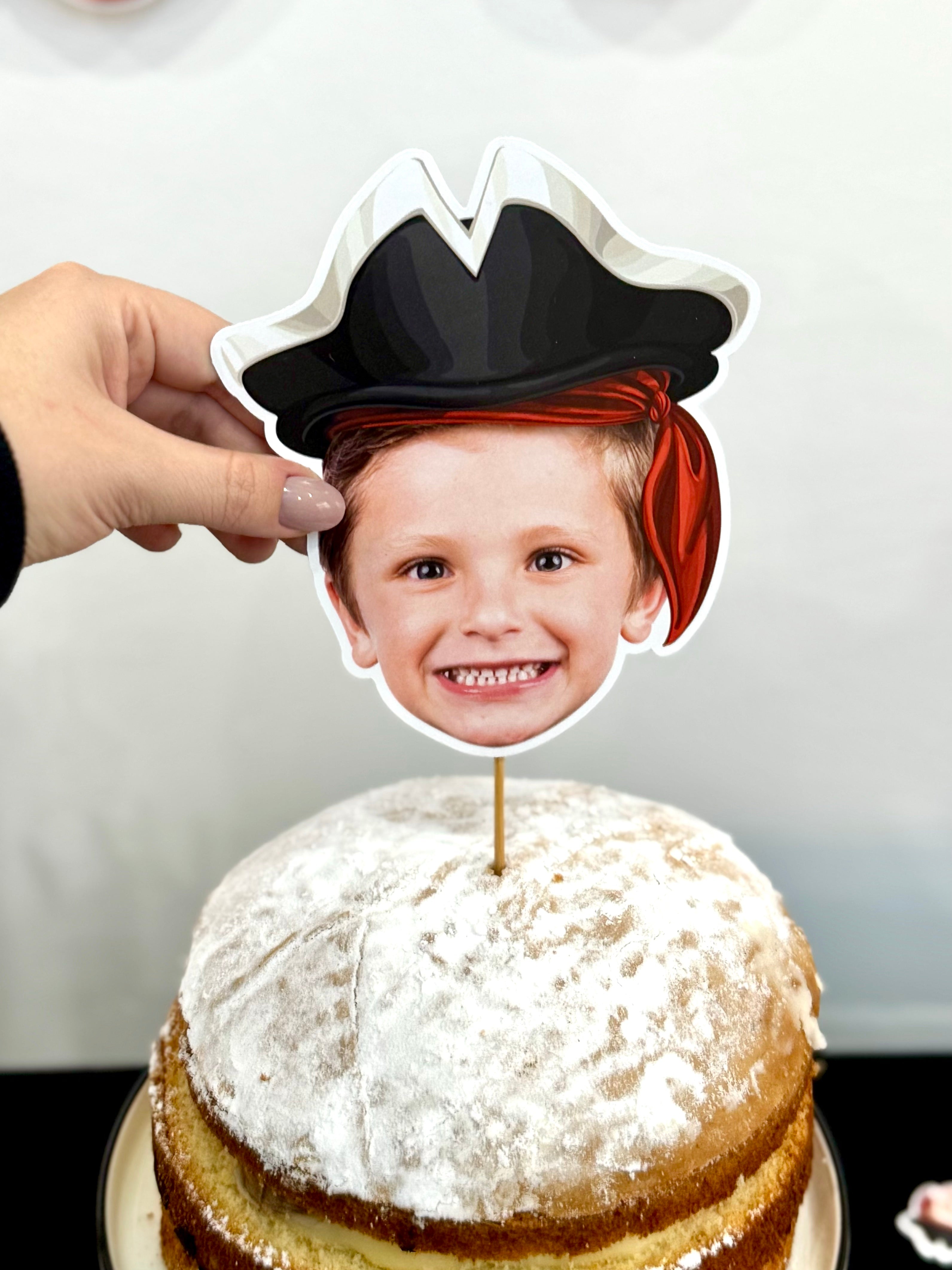 Küçük korsanınızın yüzüyle hazırlanan bu özel pasta süsü, sade ama etkileyici bir vurgu yaratır. Her fotoğraf, doğum gününün kahramanını öne çıkaran özgün bir detay haline gelir.