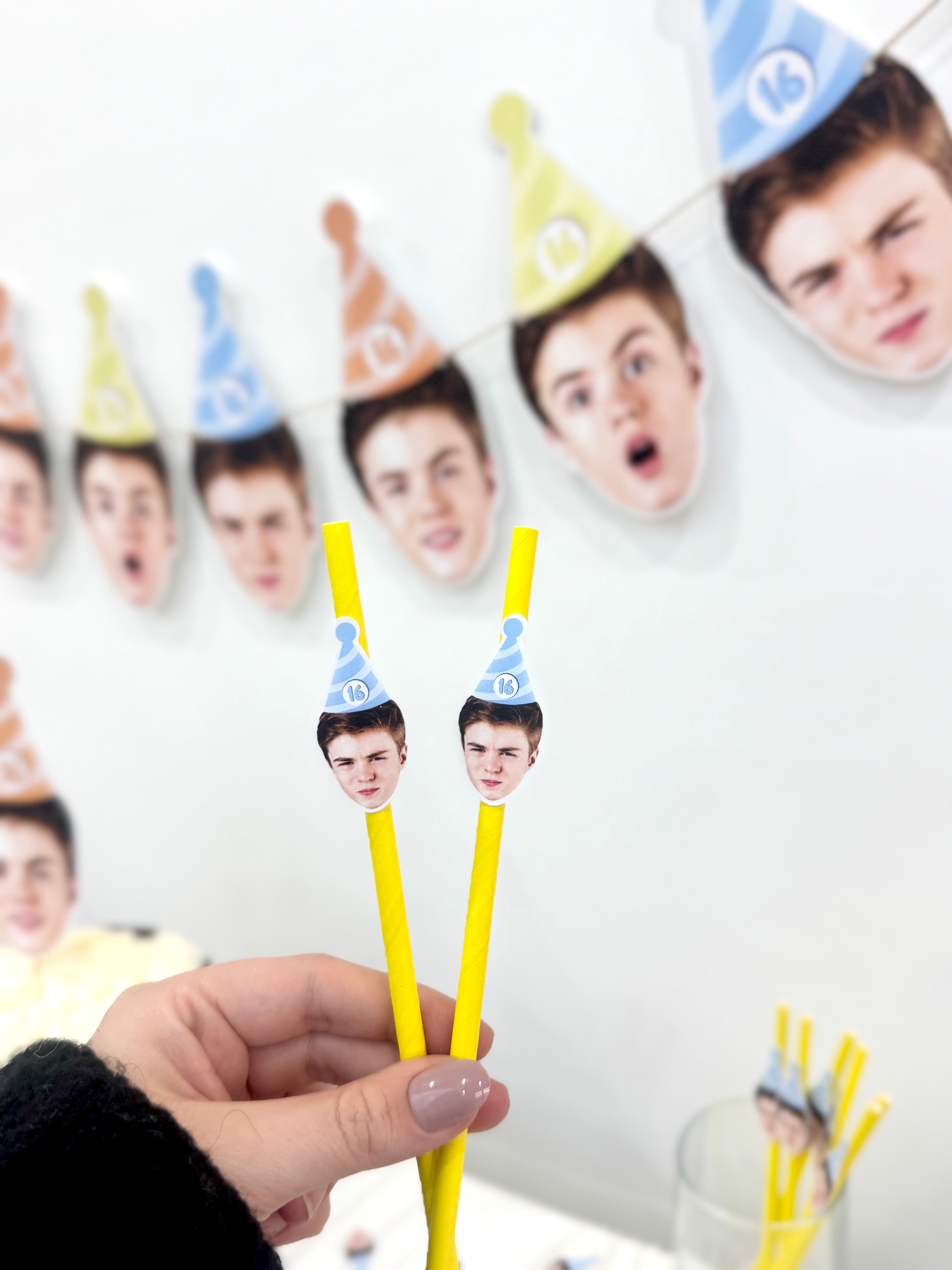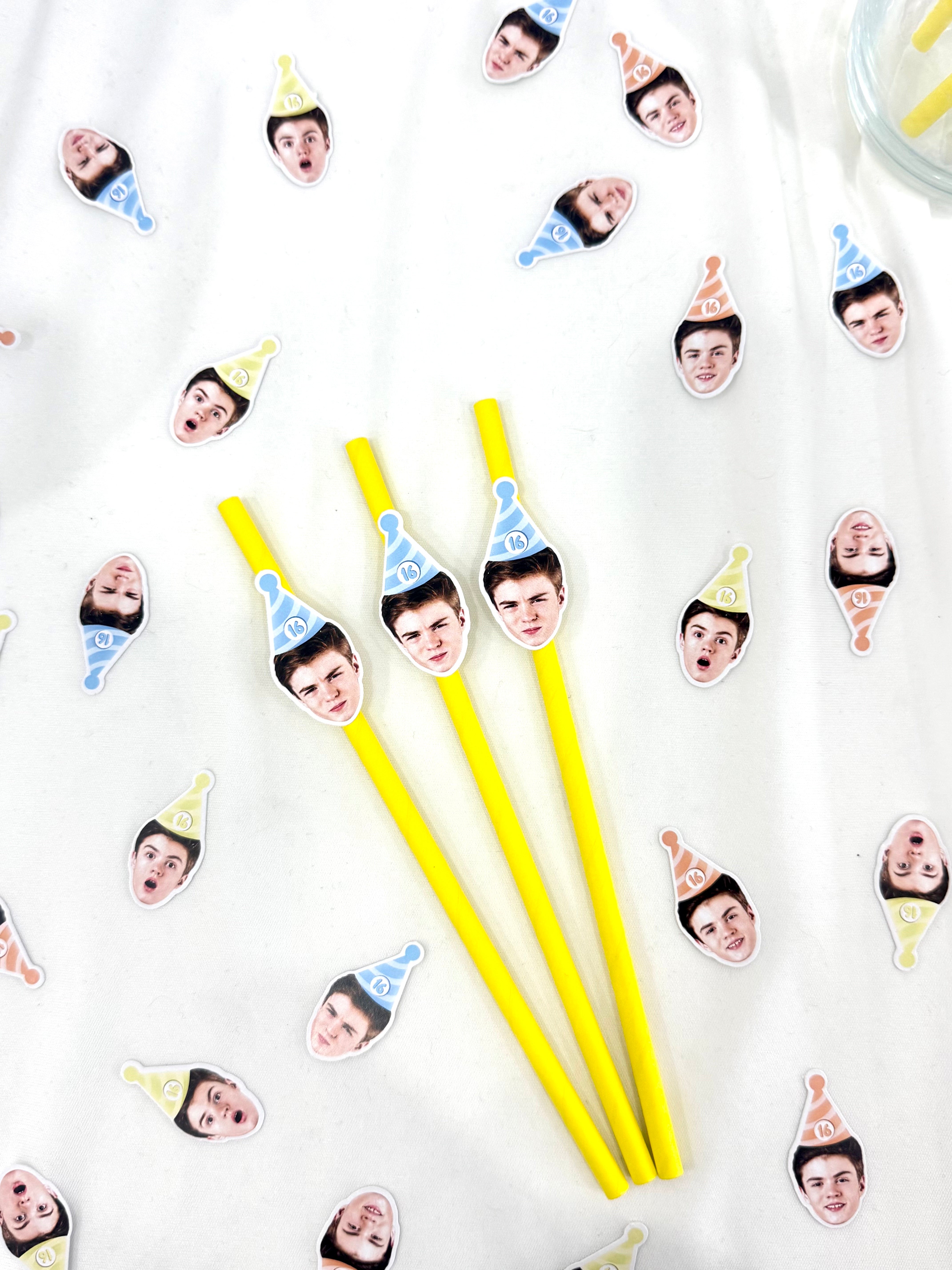 16. yaş partinizde içecekleri daha eğlenceli hale getirin! Kişiye özel fotoğraflı pipetlerle masanıza renk katın.