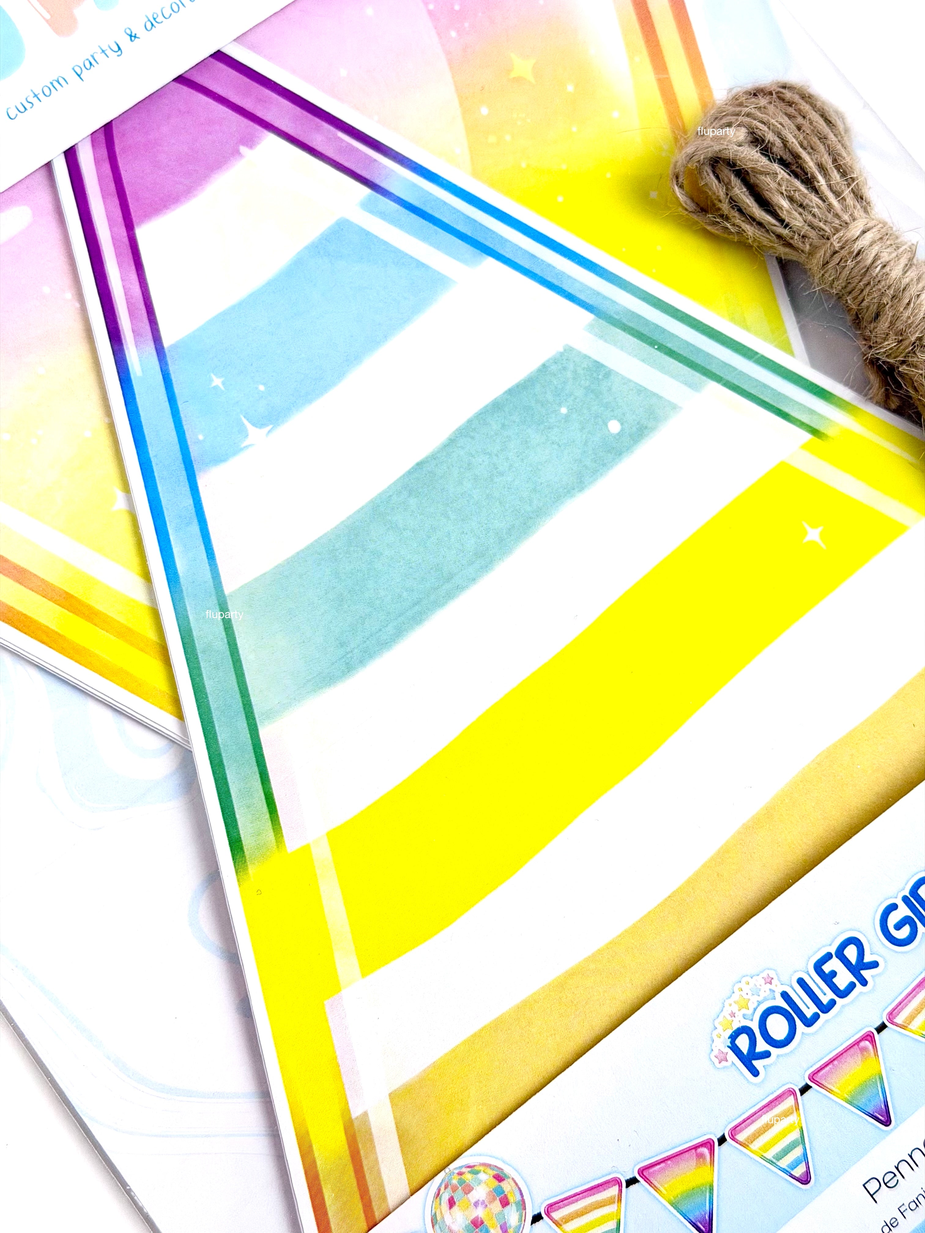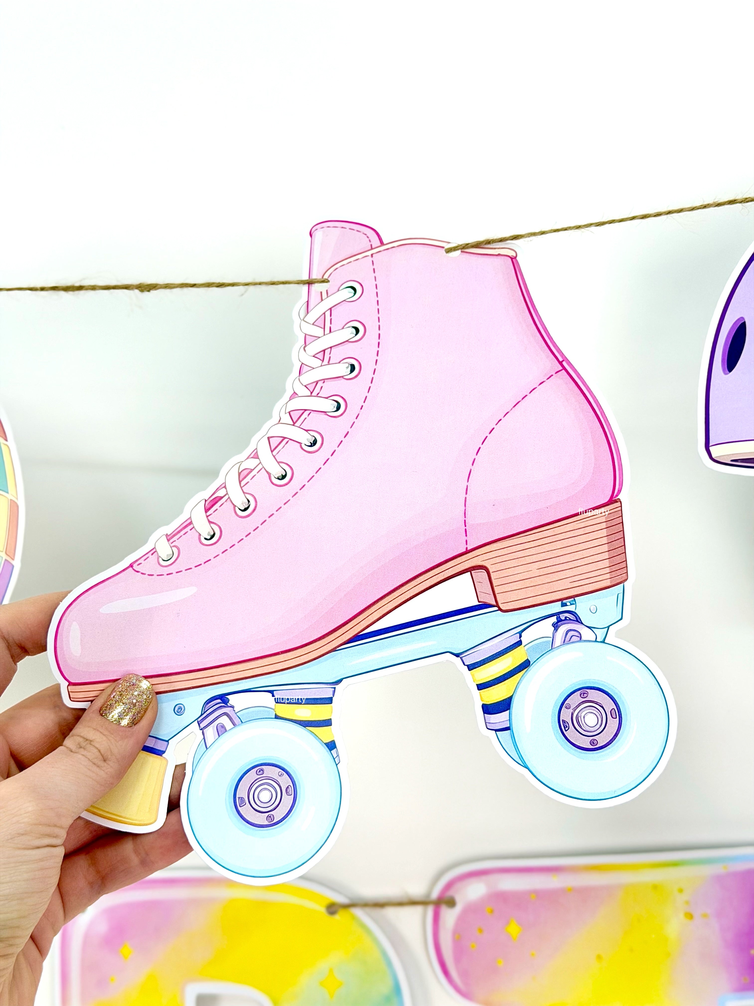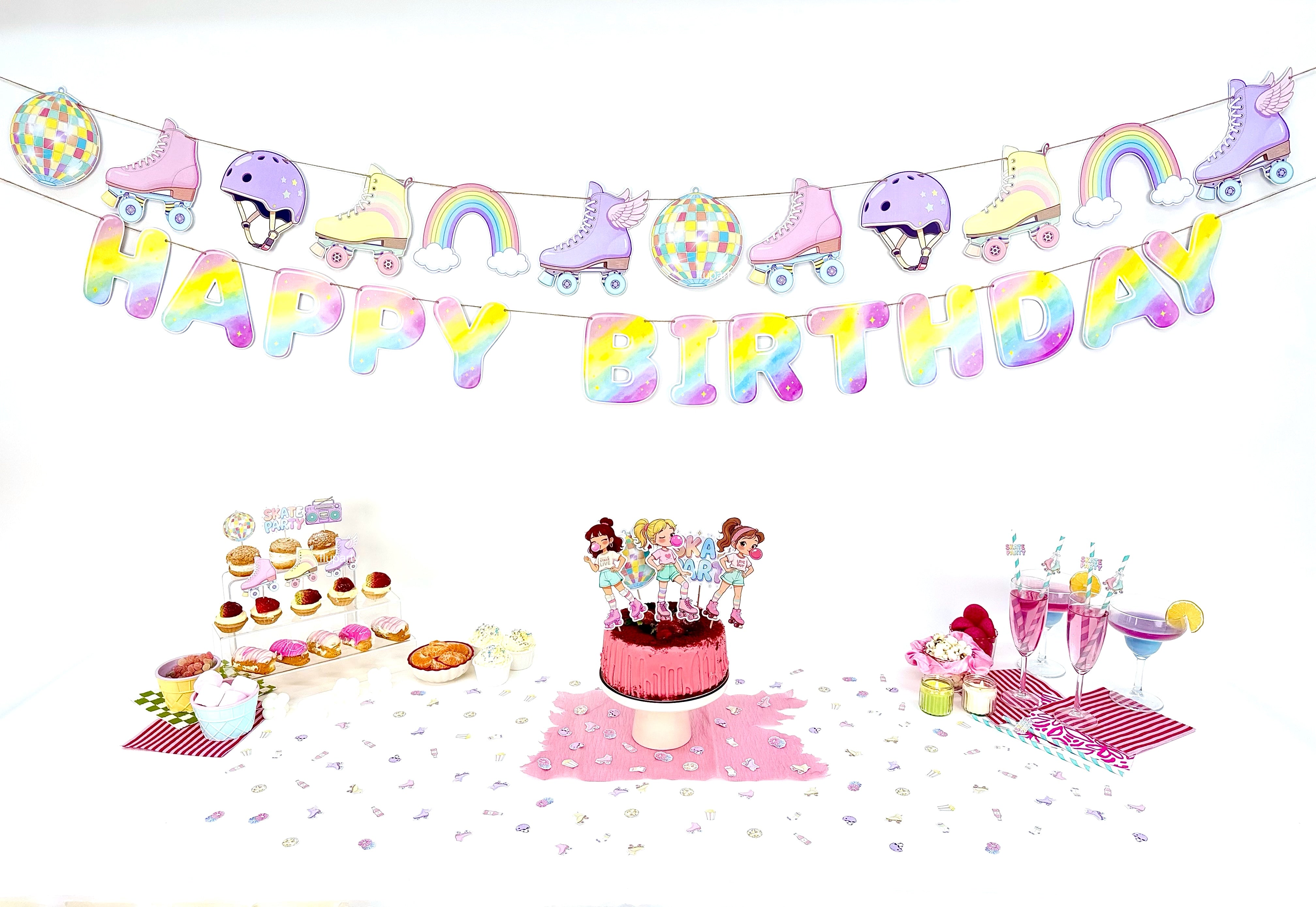Parti masasına enerji katan bu üçgen flama banner, Paten temasının dinamik stilini öne çıkarır. Renkli paten detayları konsept atmosferini güçlendirir.