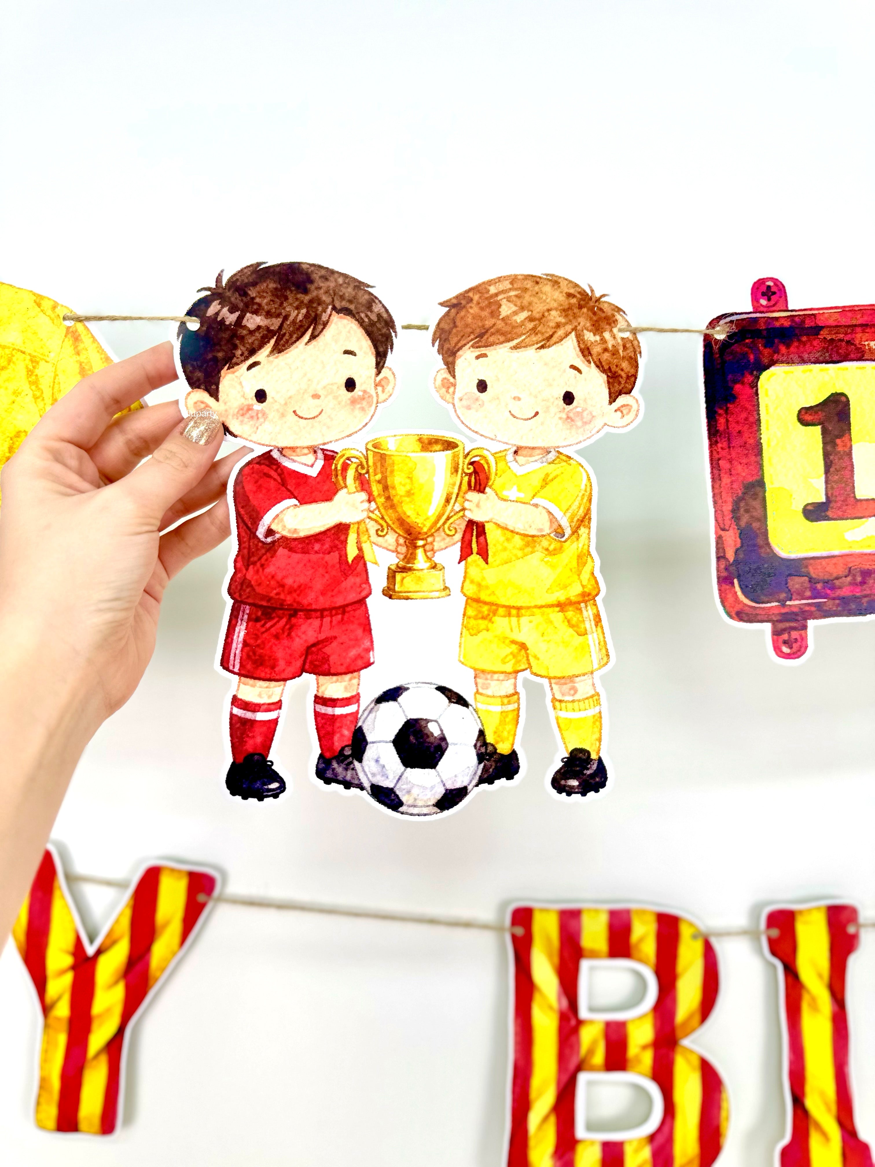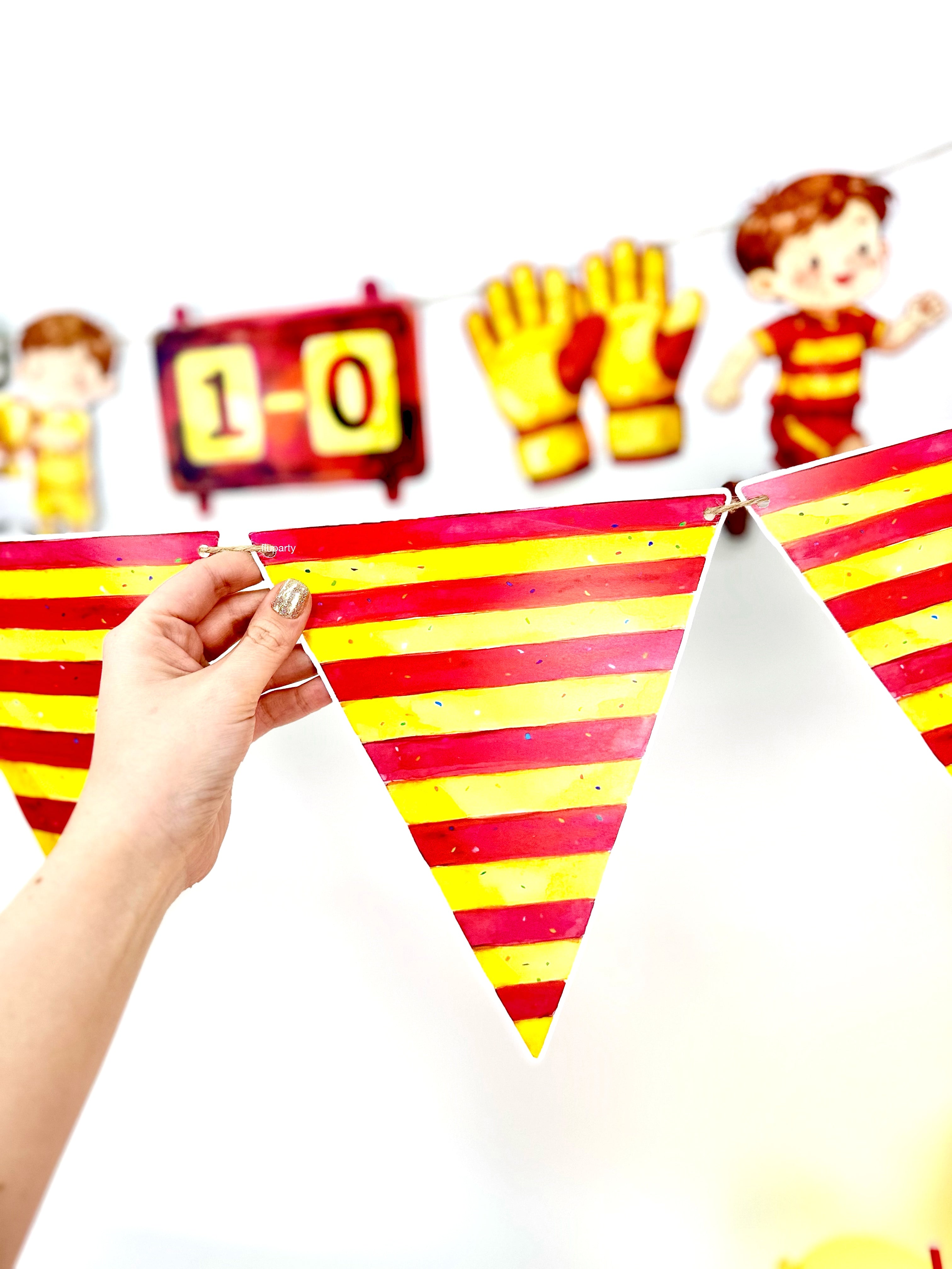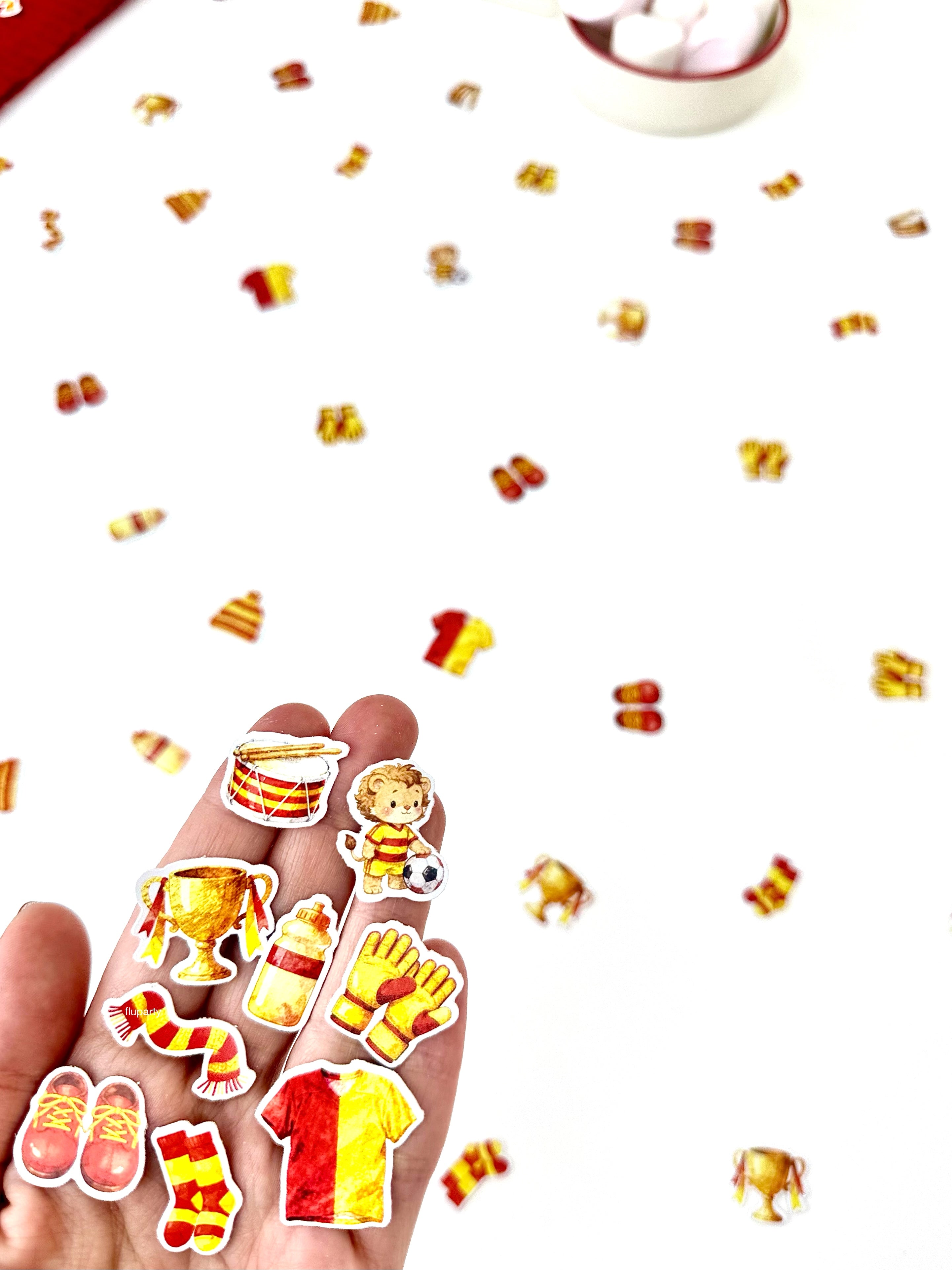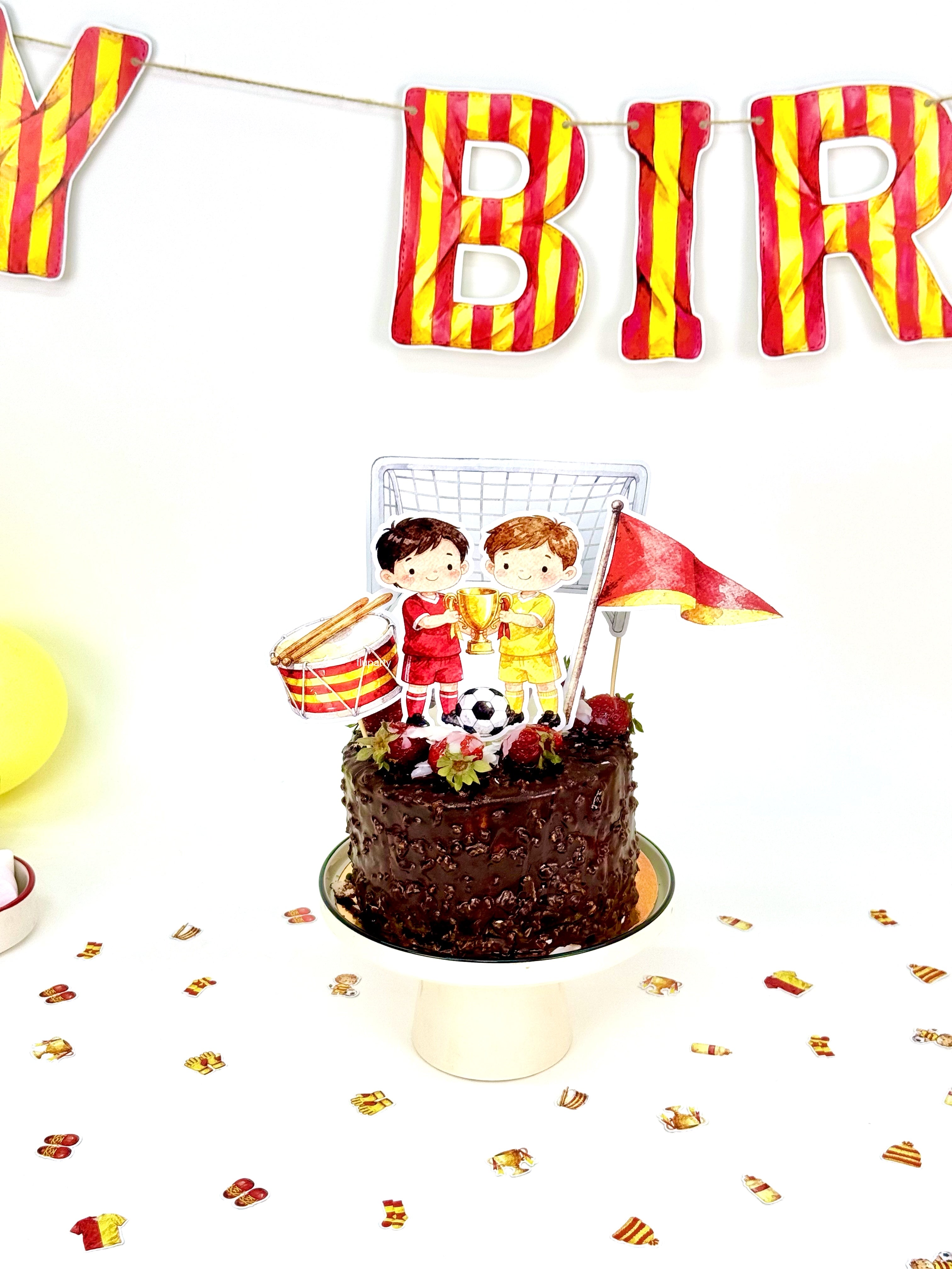 Sarı - Kırmızı futbol temalı parti seti, stadyum coşkusunu kutlama alanına taşır. Futbol detaylarıyla parti dekorunu tek pakette uyumlu ve enerjik bir şekilde tamamlar.