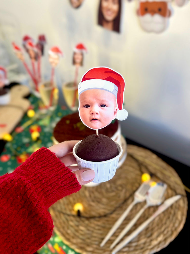 Bebeğinizin ilk yılbaşısını, sevimli bir detayla taçlandırın. Santa şapkalı fotoğraf baskısından hazırlanan kişiye özel cupcake topper’larımız, her kutlama masasını özel kılar. Parlak kâğıt, zarif kesim ve el işçiliğiyle üretilir. Lüks, sade ve tamamen kişisel.
