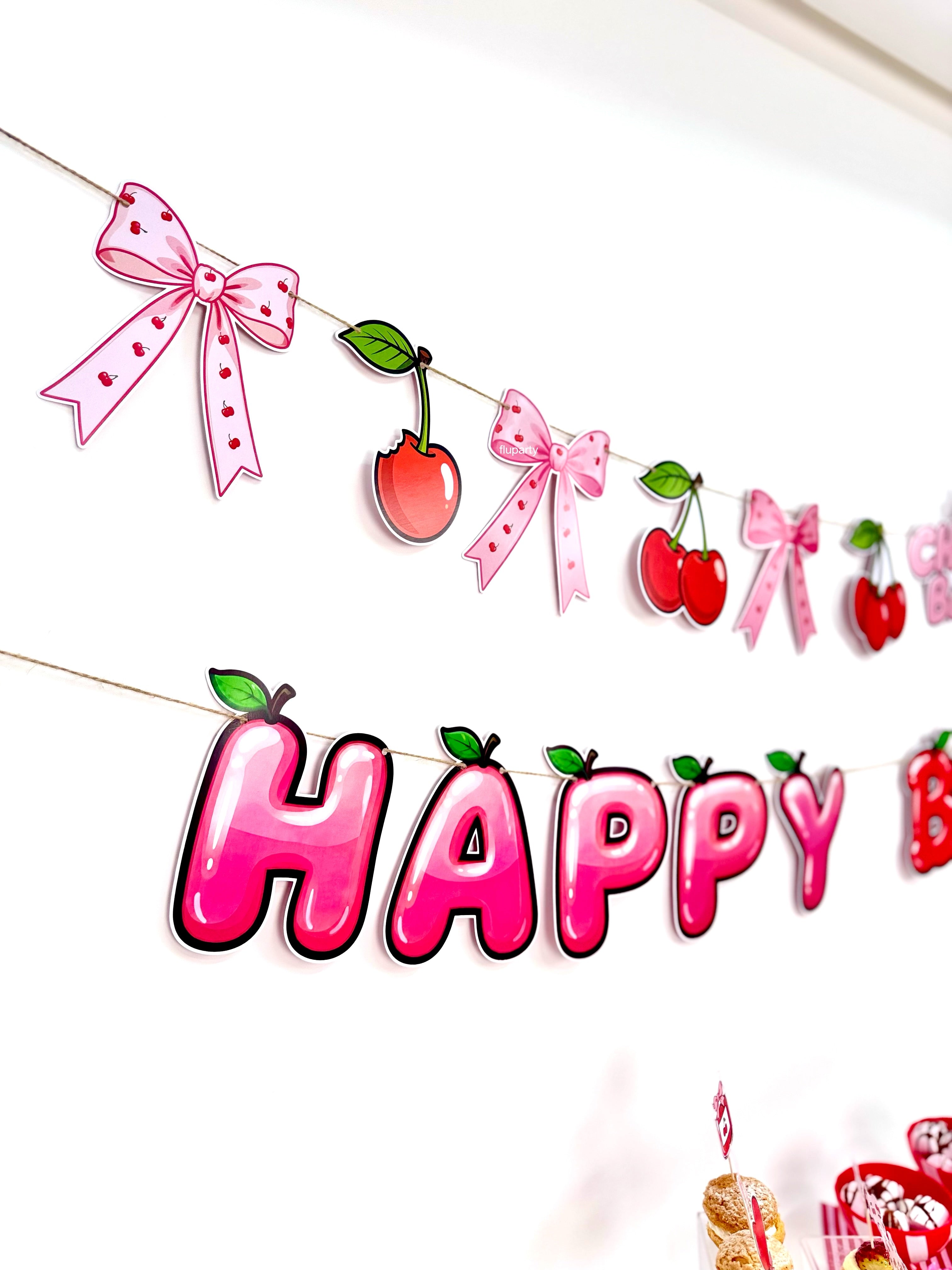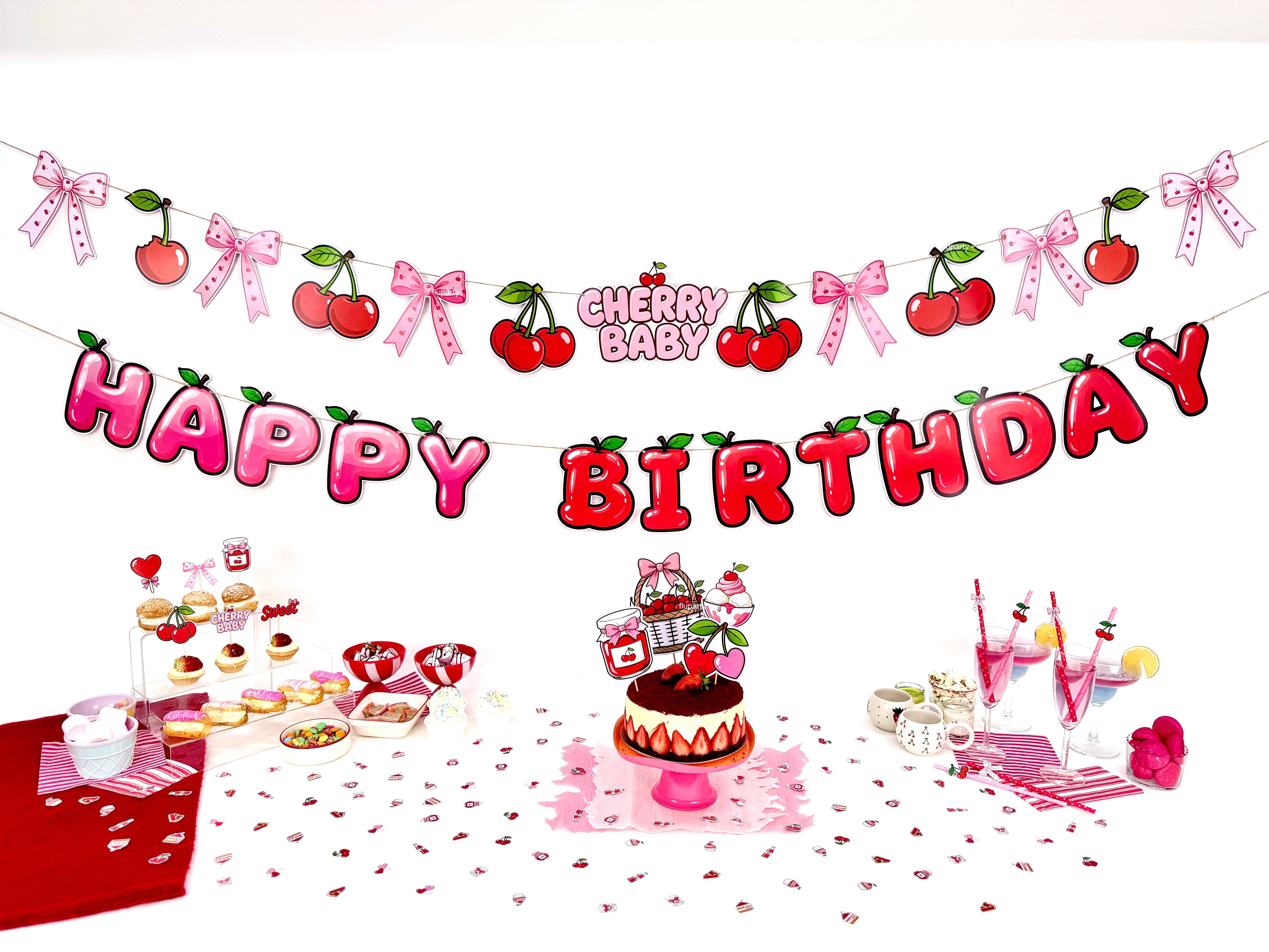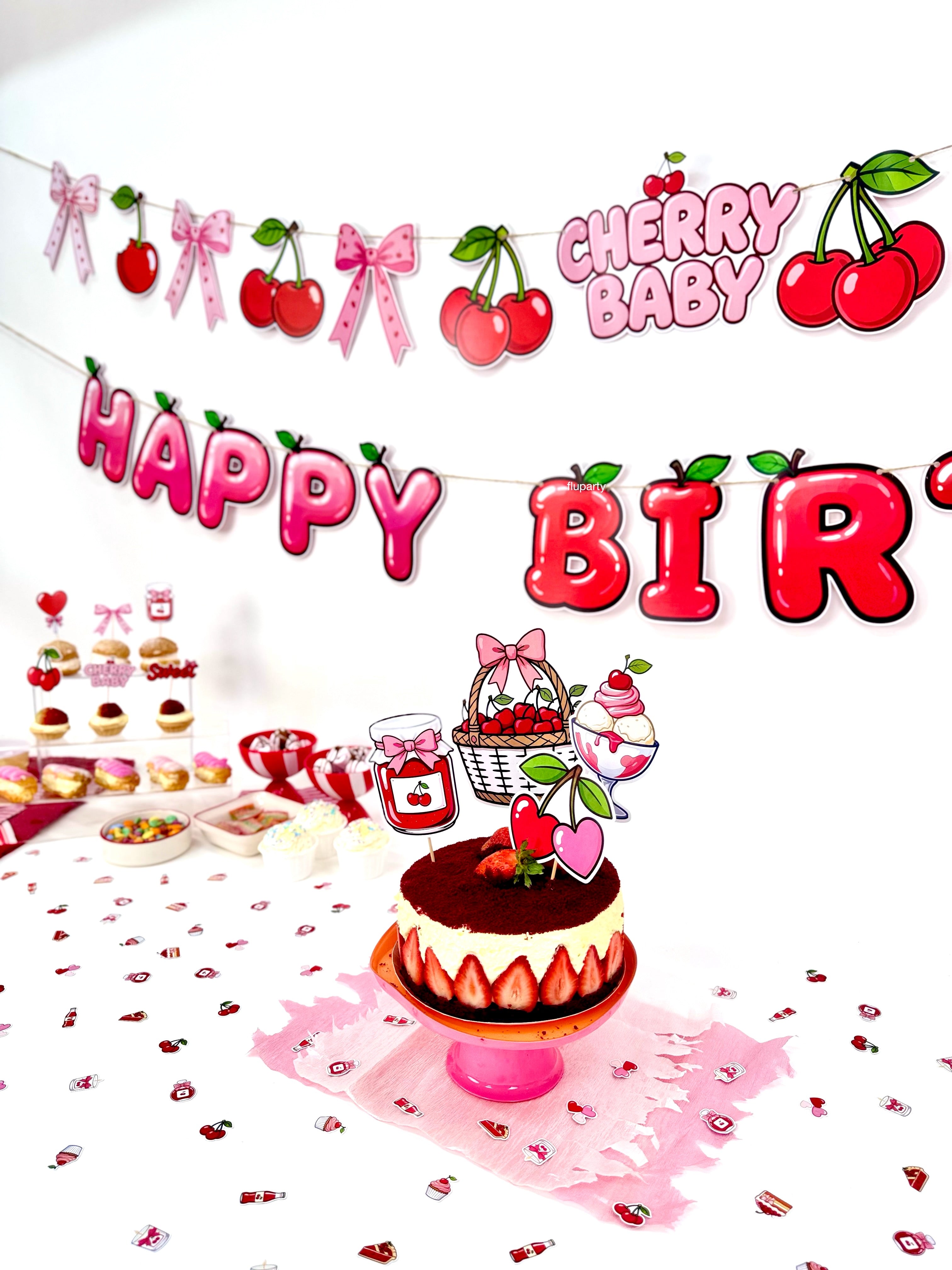 Cherry Baby Happy Birthday banner, kiraz temalı renkli harf tasarımıyla doğum günü dekorasyonuna enerjik ve eğlenceli bir görünüm kazandırır. İpli yapısı sayesinde duvar, masa arkası veya parti alanlarında kolayca asılabilir. Kiraz temalı doğum günleri ve çocuk partileriyle uyumlu olarak tasarlanan bu banner, diğer parti süsleri ile birlikte kullanıldığında dekorasyonu tamamlar.