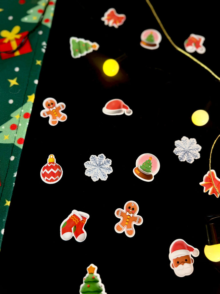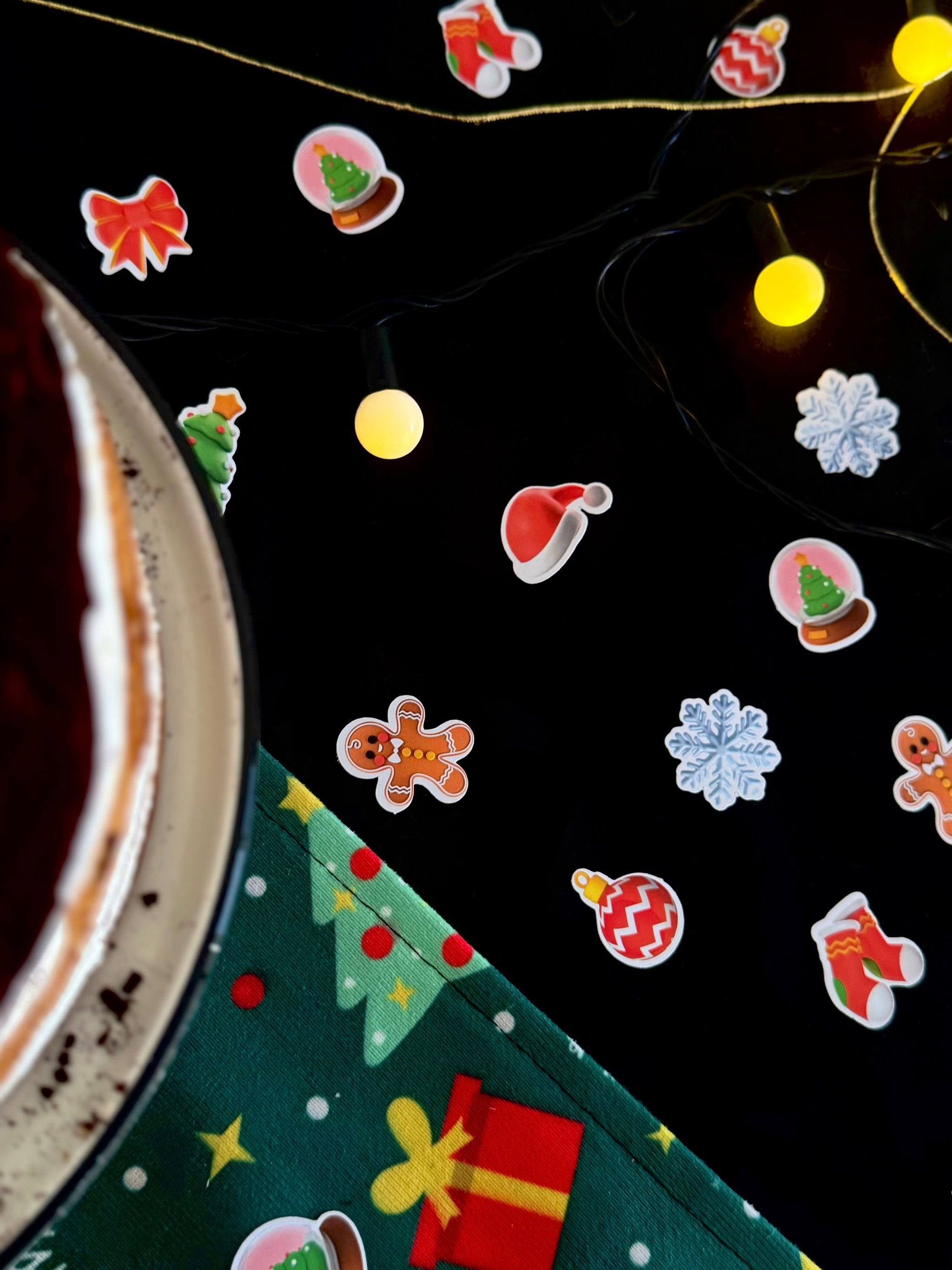 Yılbaşı sofralarına renk, ışıltı ve mutluluk katmak için tasarlandı. Gingerbread, kar tanesi, Noel Baba ve çam ağacı figürlerinden oluşan bu konfeti seti kalın parlak kâğıda yüksek çözünürlüklü baskı ile hazırlanır.