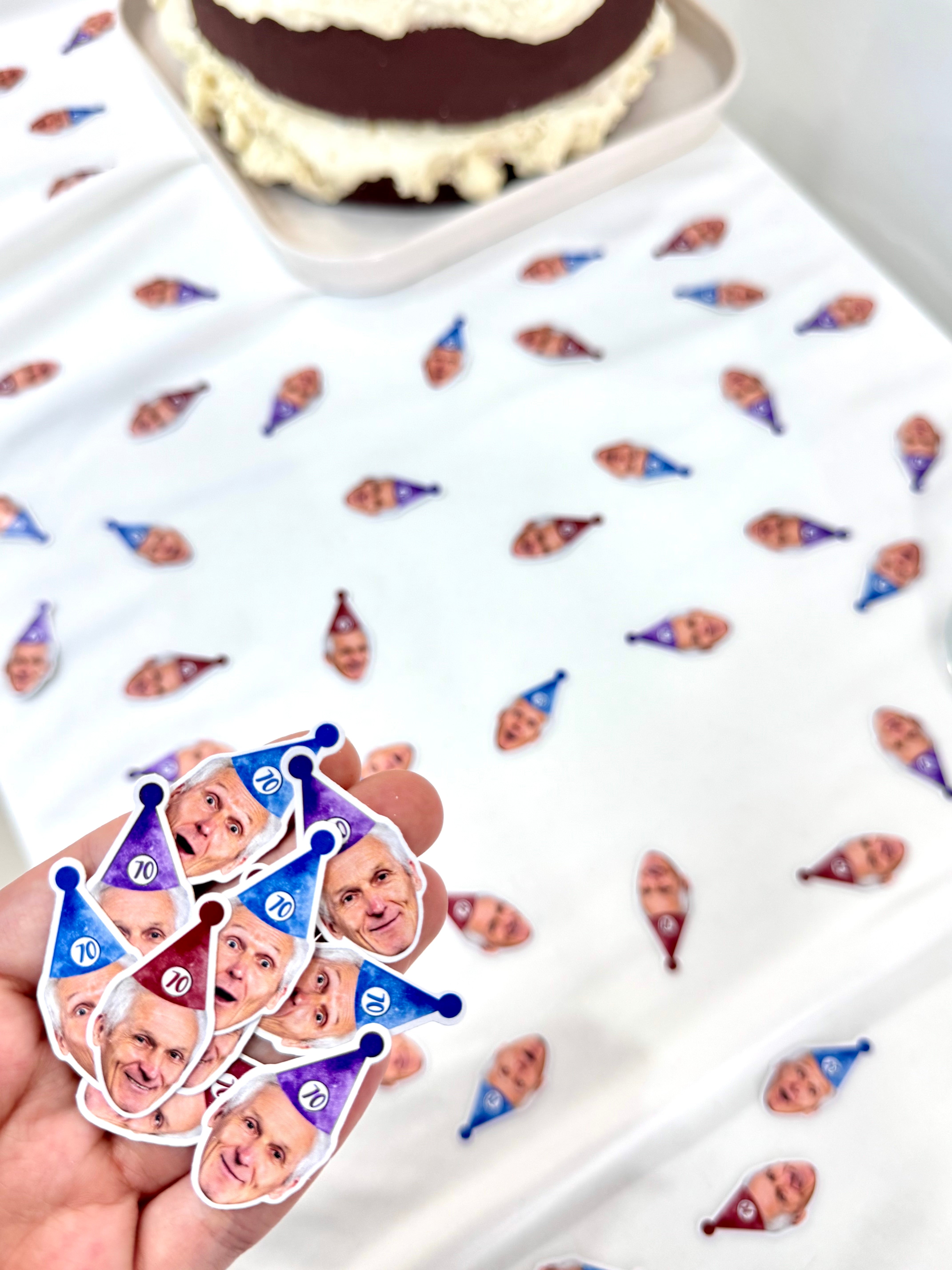 Fotoğraflı 70. yaş konfetileriyle parti masanızı eğlenceli ve size özel hale getirin.
